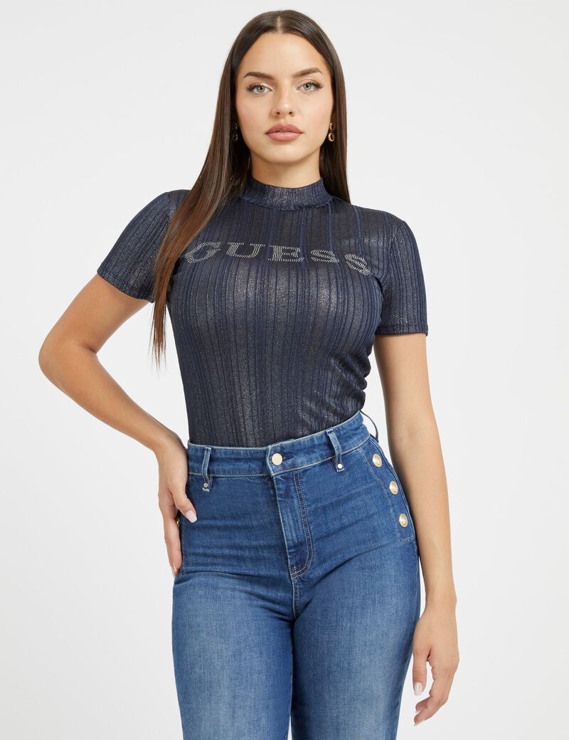 سترة من القماش الصناعي، رقبة عالية، أكمام قصيرة، قصة ضيقة. نوع القماش: نسيج مضلع. الزينة: شعار أحجار الراين. الصورة توضح المقاس S. الطول الإجمالي: 55 سم / 21.65 بوصة. حجم مناسب. الهيكل (القماش الرئيسي): 97 %بوليستر، 3% إيلاستين. ملصق الغسيل: يُغسل بدرجة حرارة 30 درجة مئوية كحد أقصى.