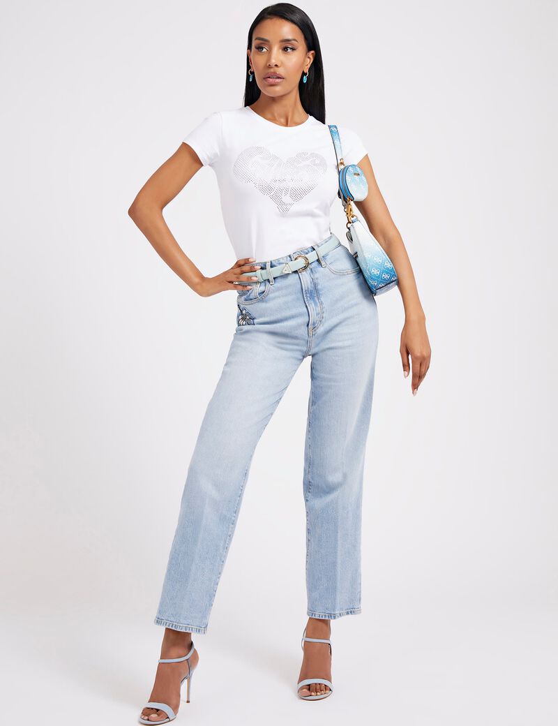 يحتوي هذا المنتج على ألياف من القطن العضوي. تيشيرت بمزيج من القطن. ياقة بفتحة ضيقة. أكمام قصيرة. قصة ضيقة. نوع النسيج: جيرسي. الزخرفات: مزين بأحجار الراين. تظهر الصورة المقاس الصغير. الطول الإجمالي: 61 سم/ 24 بوصة. مطابق للمقاس الحقيقي. النسيج الخارجي (الرئيسي): 95% قطن، 5% إيلاستان. طريقة الغسل: غسل على 30 درجة مئوية حدًّا أقصى.