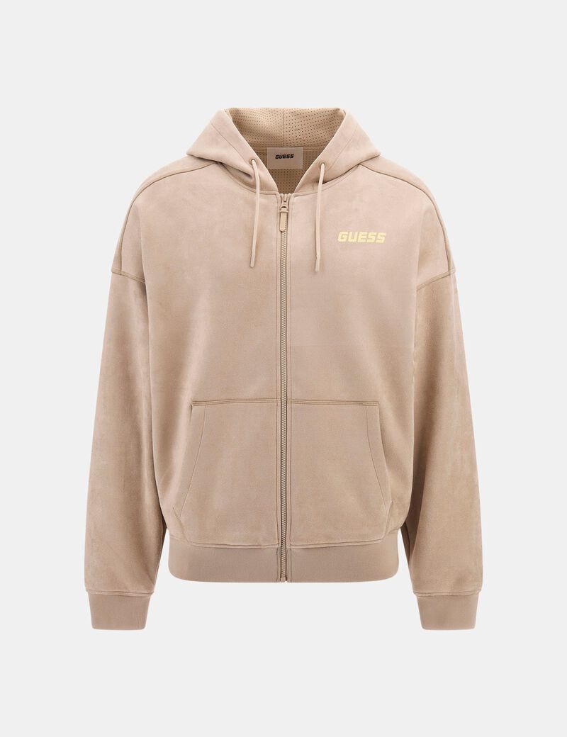 - بلوزة بأكمام طويلة من قماش سكوبا المرن مع ملمس جلد سويدي ناعم.