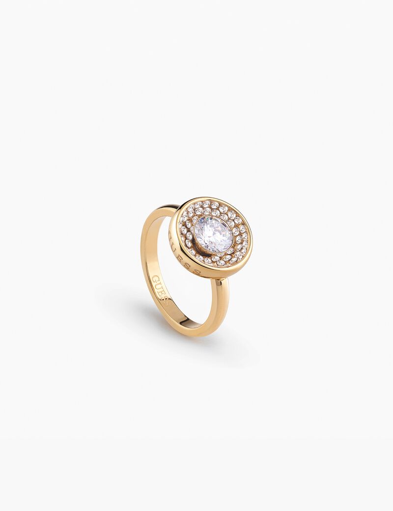 - Large central cubic zirconia with small cubic zirconia pavé embellishment.