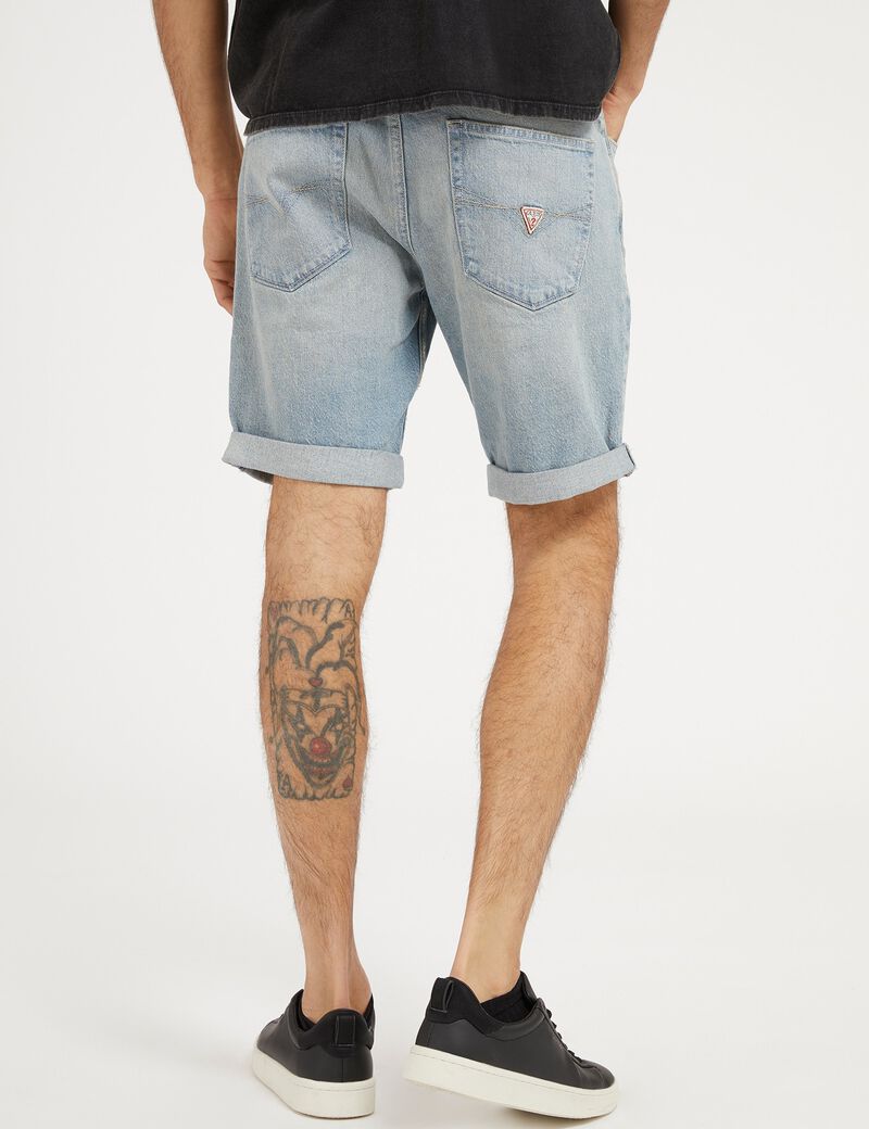 Cotton blend denim shorts. Slim fit. Mid Rise. Classic 5-pockets. Front zip and button fastening. FABRIC TYPE: Stretch Denim. TREATMENTS: Light wash. Picture shows size M. Inseam length: 29,8 cm / 11. 75 inch. True to size. SHELL (main fabric): 77% Cotton 22% Lyocell 1% Elastane. WASH LABEL: Wash max 30°C. This item has been made with a cellulose fiber coming sustainably managed forests and recycled cotton scraps. The whole fiber's production process is non-toxic and waste removing. The fabric is more absorbent than cotton, softer than silk and cooler than linen.