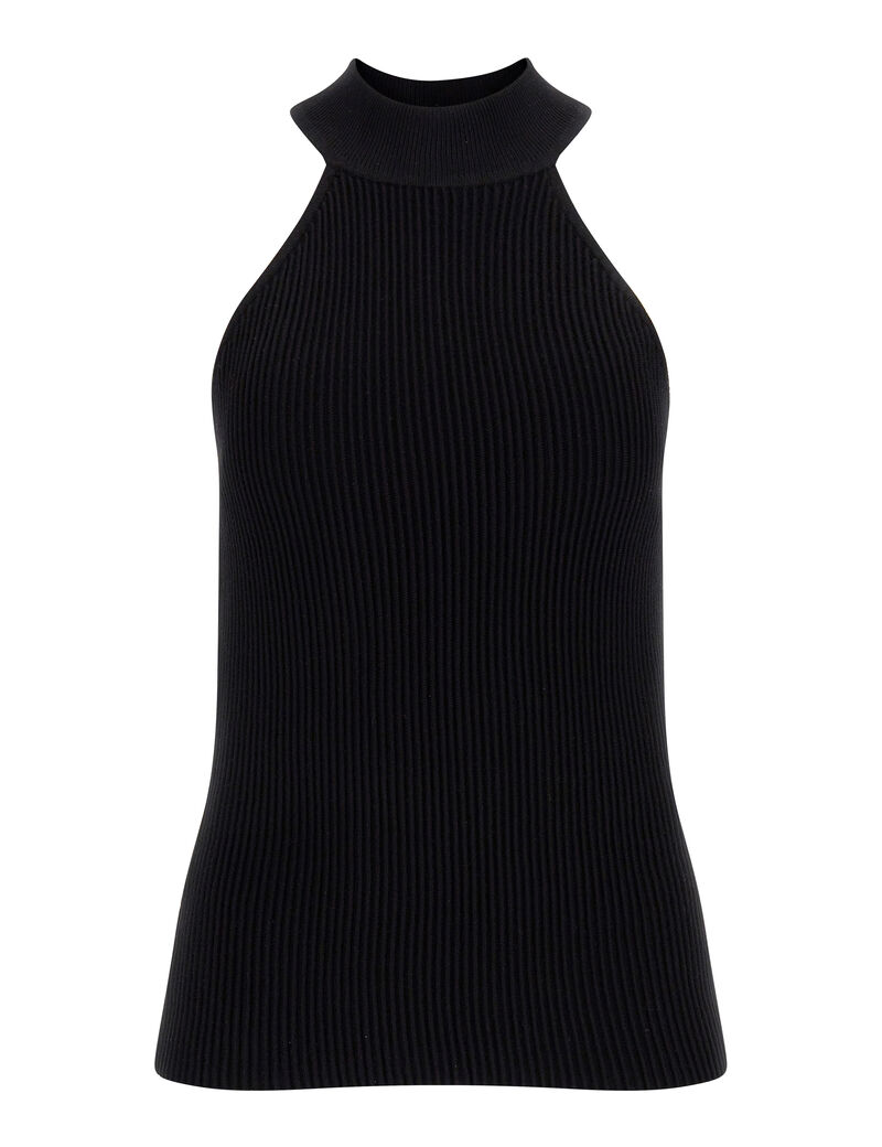 - Viscose blend sweater. High neck. Sleeveless. Slim fit. FABRIC TYPE: Rib. Picture shows size S. Total length: 50,8 cm / 20 inch. True to size. SHELL (main fabric): 71%Viscose 29%Polyamide. WASH LABEL: Hand wash in cold water.