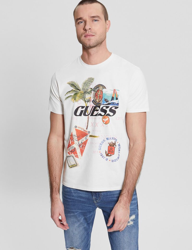 Cotton t-shirt. Crew neck. Short sleeves. Regular fit. FABRIC TYPE: Jersey. FABRIC DETAILS: Collage print. Picture shows size M. Total length: 72,4 cm / 28. 5 inch. True to size. SHELL (main fabric): 1% Cotton. WASH LABEL: Wash max 3°C.